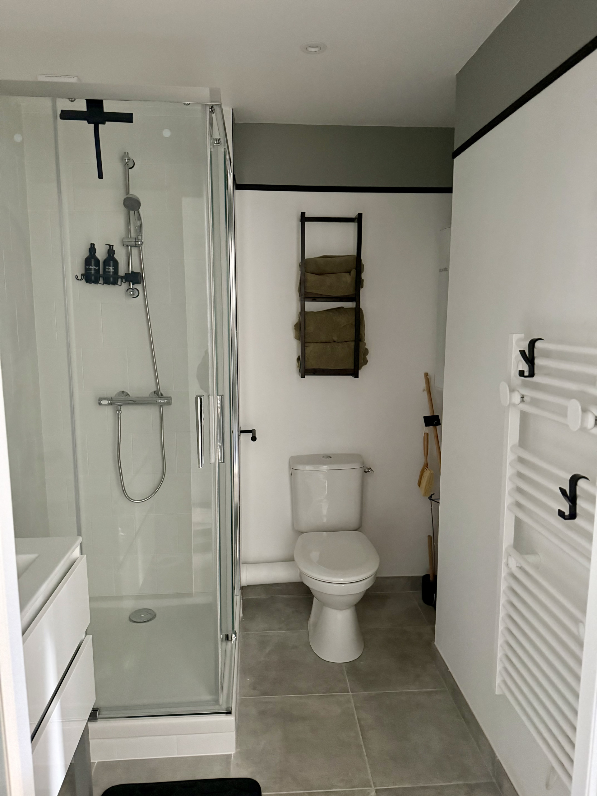 La salle d’eau est moderne et pratique. Elle est équipée d’un radiateur sèche-serviettes pour votre confort.