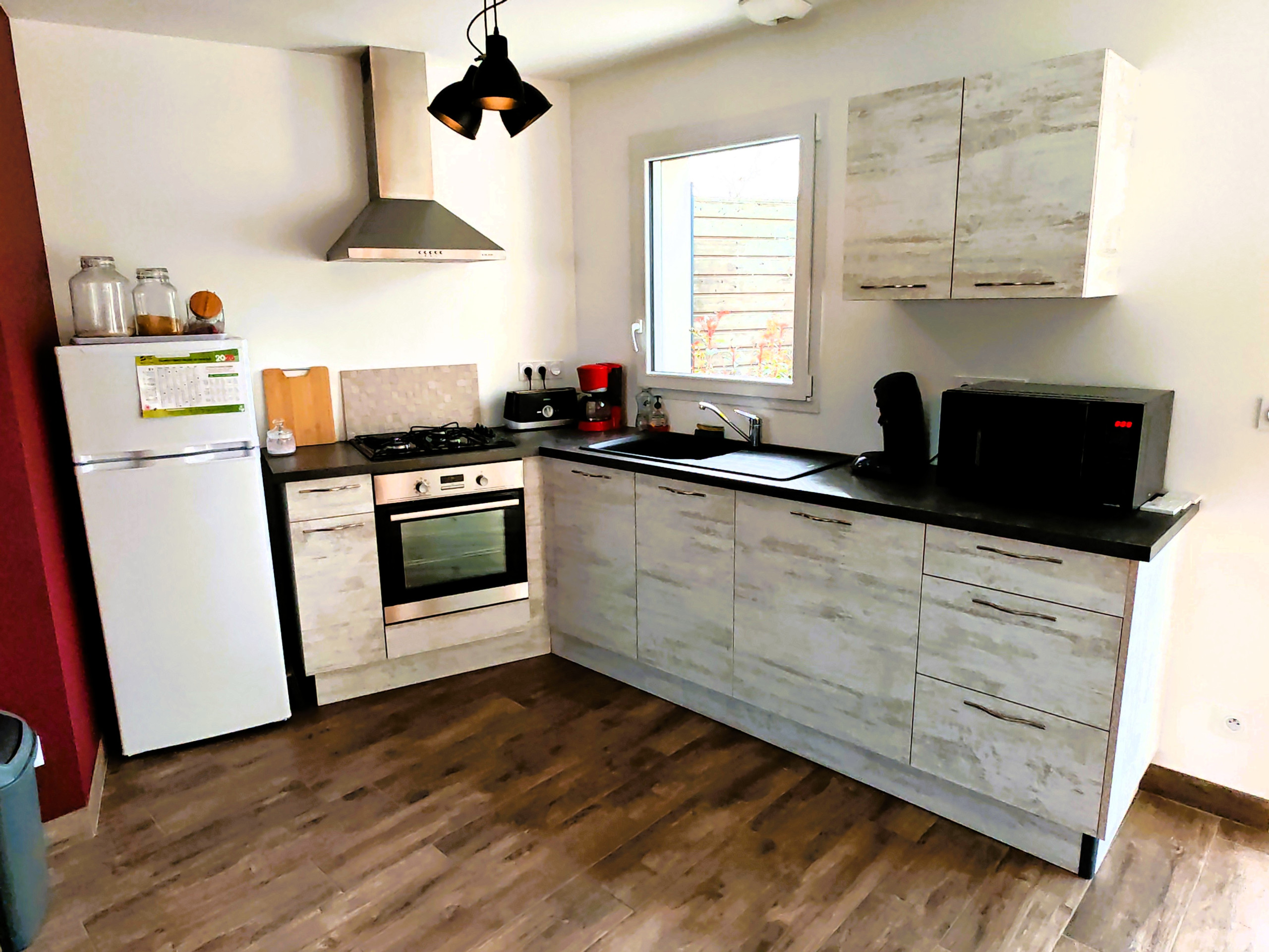 - Cuisine parfaitement équipée et fonctionnelle : réfrigérateur, congélateur, lave-vaisselle, cafetières avec filtres, bouilloire, plaque de gaz, four, micro-ondes, machine à laver.
